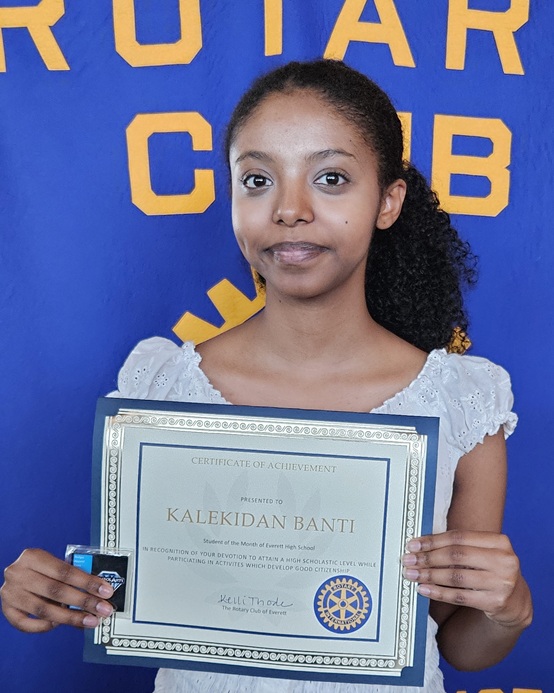 Everett High Student of the Month is Kalekidan Banti, who has maintained a GPA of 3.9 while challenging herself with multiple AP courses. Her teachers describe her as the kind of student who elevates every space she enters. “She consistently creates spaces where everyone feels valued, actively seeks out student voice in decisions, collaborates with purpose,” said one, “and leads by example through her reliability and strong work ethic.” Another said “Kalekidan Banti is a delight—hard working, diligent, focused and kind. She is the kind of young woman who gives you hope about the future.”
