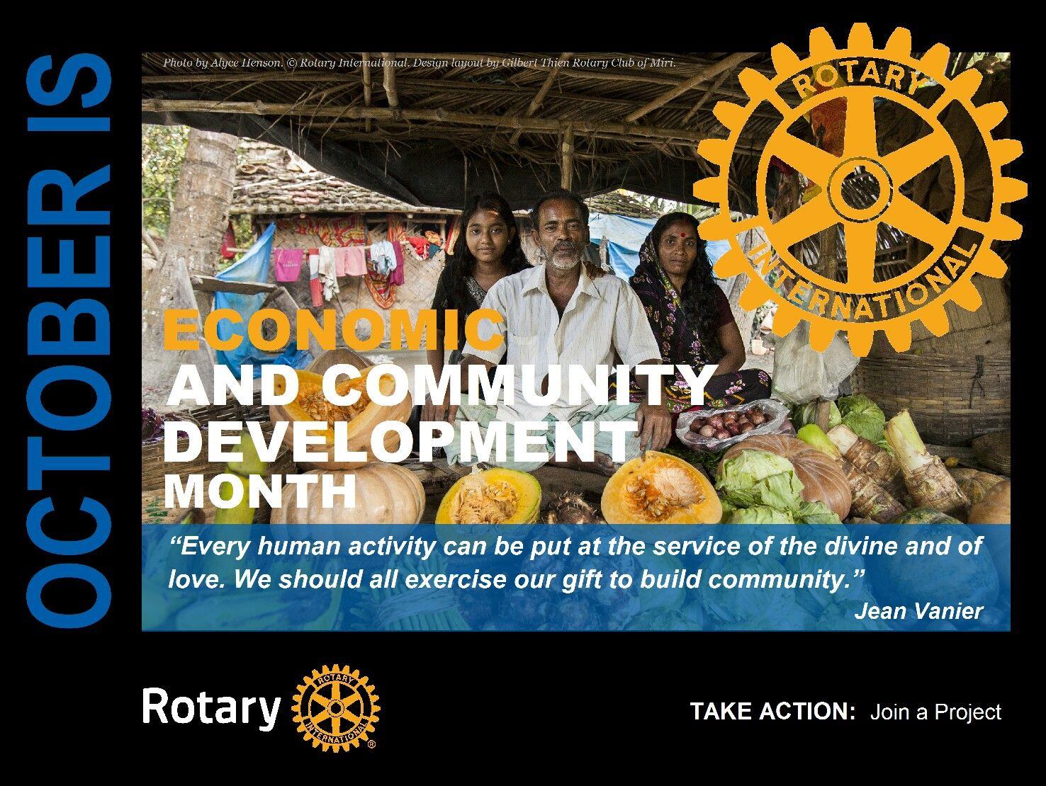 In October, Rotary focuses on Community Economic Development. This theme reminds us that sustainable, thriving communities are built on opportunities for employment, entrepreneurship, education, and access to resources that empower people to lift themselves out of poverty and build resilient futures.